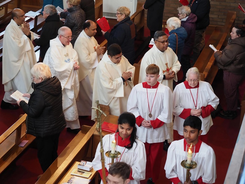 On Friday, 20 February 2026, during the celebration of the Holy Eucharist at St. Paul’s RC Church, Cramlington, the Chapel of Our Lady of Fatima was solemnly blessed and dedicated. The Sacred Liturgy was presided over by Canon Stephen Watson; the relics of Saints Francisco and Jacinta Marto were reverently enshrined by Rev. Fr. Shaun O’Neil, and the chapel itself was blessed by Rev. Fr. Peter Stott, in the prayerful presence of clergy and faithful from across the parishes.